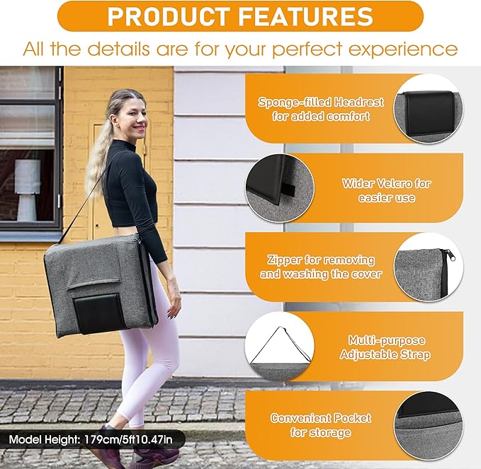 - 𝐖𝐈𝐓𝐇 𝐅𝐎𝐋𝐃𝐀𝐁𝐋𝐄 𝐅𝐔𝐍𝐂𝐓𝐈𝐎𝐍 - Considering the user's portability, we designed the foldable function. After folding the chair in half, you can easily store it in the corner of your home, or it can be fully unfolded and placed under the bed or sofa without taking up extra space. At the same time, the floor chair is equipped with adjustable shoulder strap, which is very convenient to carry outdoors to participate in various activities. The zippered pocket on the back is designed for easy storage.