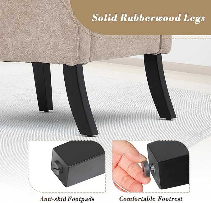 - Strong Build: Enjoy lasting comfort with this durable living room chair, designed with a wooden frame and rubberwood legs that can support up to 300 pounds.