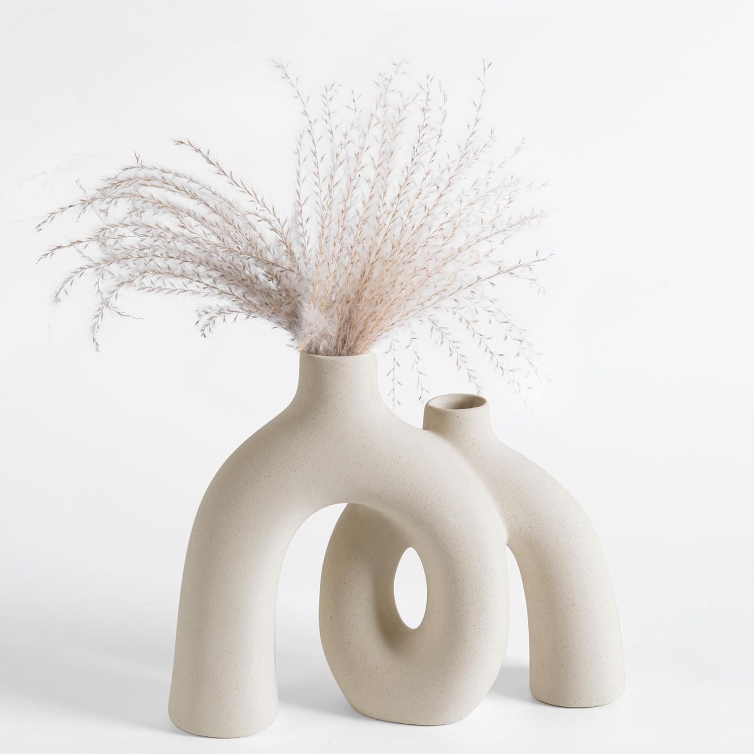 - MODERN BOHO DESIGN: JSHETN modern boho design donut style flower vases are perfect for showcasing aesthetic home decor with fresh, dried flowers or artificial flowers or as a standalone amazing decor centerpiece for any room just like a romantic couple snuggling together. Not just a vase, but also a perfect piece of art adding a touch of romance and elegance to any space.