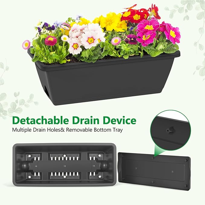 - 【Effective Drainage】The designed structure of drain holes and bottom removable trays allows for proper drainage, preventing waterlogging that can be harmful to plant roots. When watering plants, excess water in the herb garden planter outdoor can quickly escape through these holes and help maintain soil drainage and ventilation, keeping the plants healthy in the long run. Bottom removable trays of herb garden planter outdoor catch the water that drains out from the planter and keep the surrounding area clean.