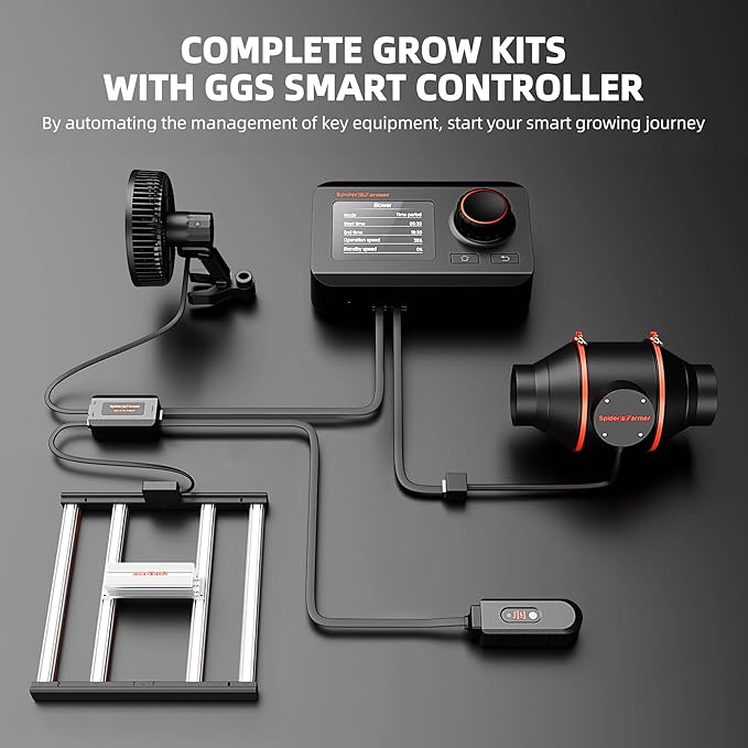 - Smart Environmental Controller: It integrates with various monitoring devices, including temp/humidity/light sensors, and is managed via the Spider Farmer app or manually operated. You can easily customize the light with 0%-100% dimming, grow cycles timer on/off schedule, adjust inline fan speed control over airflow, clip fan running speed & oscillating head angle. Ensures your plants thrive under optimal conditions
