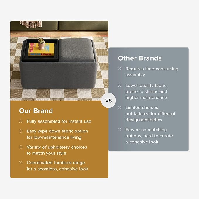 - Reversible Tray Top with Cushion: Flip the plush cushion to reveal a sturdy wooden tray, perfect for serving drinks, holding decor, or creating a stable surface