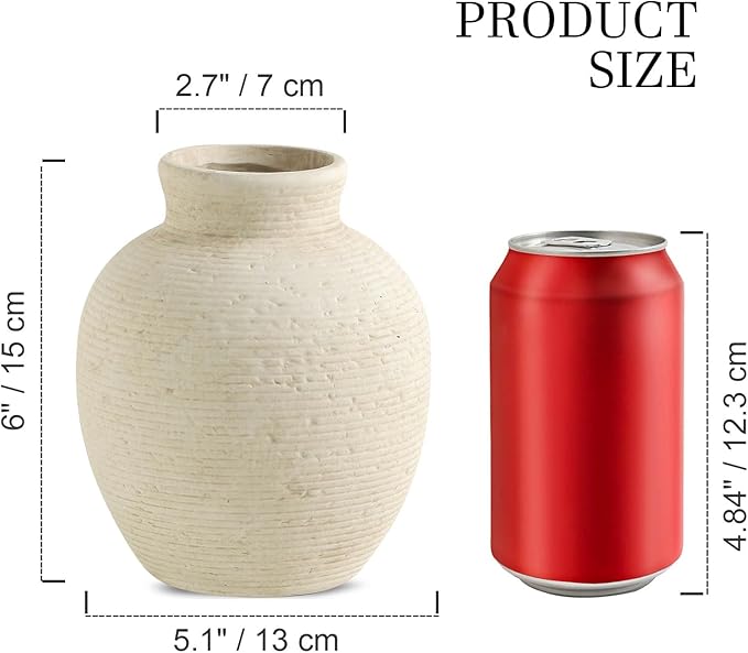 - 【Handcrafted & Rich in Texture】Featuring intricate detailing and a rich texture, this vase complements a variety of home styles—farmhouse, rustic, country, even modern. It effortlessly blends in with existing furniture and accessories, adding a timeless charm and harmonious look to your space. (Note: Each piece is hand-finished, so slight variations in texture make every vase unique.)
