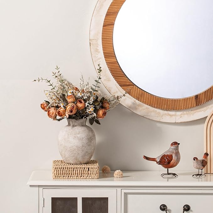 - 【Handcrafted & Rich in Texture】Featuring intricate detailing and a rich texture, this vase complements a variety of home styles—farmhouse, rustic, country, even modern. It effortlessly blends in with existing furniture and accessories, adding a timeless charm and harmonious look to your space. (Note: Each piece is hand-finished, so slight variations in texture make every vase unique.)