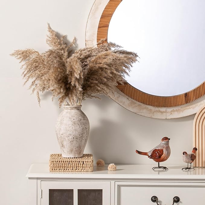 - 【Handcrafted & Rich in Texture】Featuring intricate detailing and a rich texture, this vase complements a variety of home styles—farmhouse, rustic, country, even modern. It effortlessly blends in with existing furniture and accessories, adding a timeless charm and harmonious look to your space. (Note: Each piece is hand-finished, so slight variations in texture make every vase unique.)