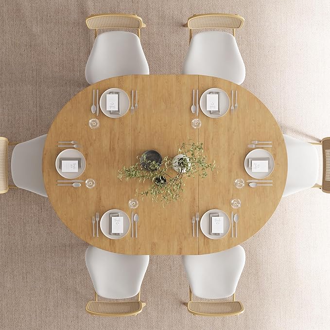Feonase 59" Round Extendable Dining Room Table for 6, Modern Oval Kitchen Table with Heavy Duty Wood Base, for Kitchen Dining Living Room, Easy Assembly, Noise-Free, Oak