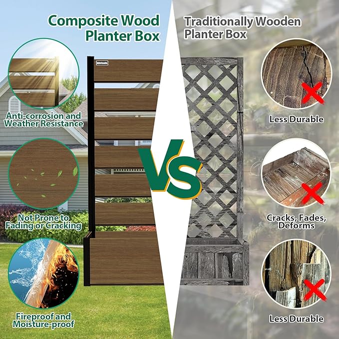 - Modern & Stylish Design: The Vertical Screen Planter Bed combines sleek composite wood panels with a strong black aluminum frame, creating a contemporary and sophisticated look for your garden, patio, or backyard.