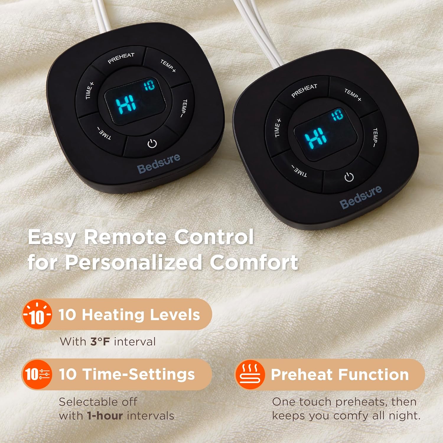 - Safer & More Reliable: Conducted in Bedsure Intertek-Recognized Satellite Lab, 74 safety tests with standards surpassing UL ensure safer performance. This king size heated blanket is ETL and FCC certified, and its default 8-hour auto shut-off prevents it from overheating so that you can enjoy warmth with complete peace of mind