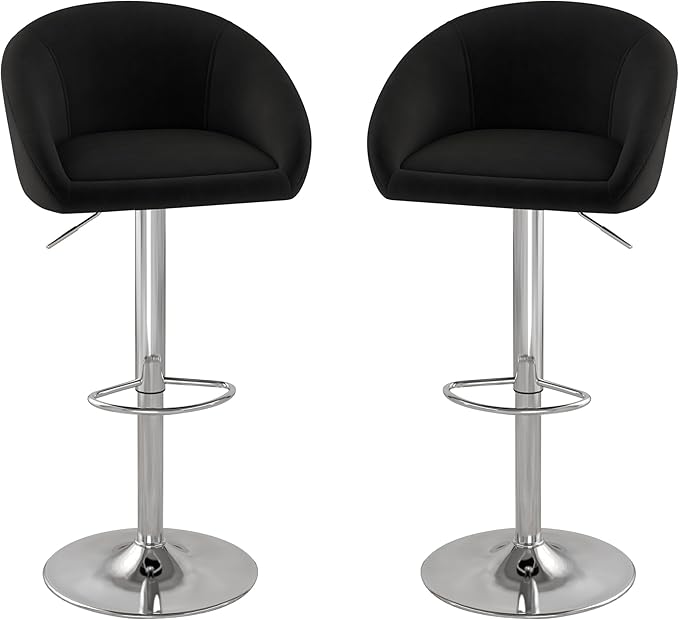KCC Velvet Bar Stools Set of 2, Counter Height Bar Stools with Low Back, Swivel Barstool for Kitchen Island, Bar Pub (Black)