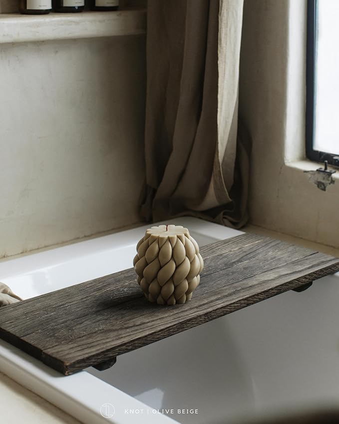 LAWA Knot Ball Candle - Large Beautiful Handmade Pillar Scented Soy Wax Elegant Bubble Aesthetic Candle Housewarming Gift Home Room Shelf Decor Idea Olive Beige