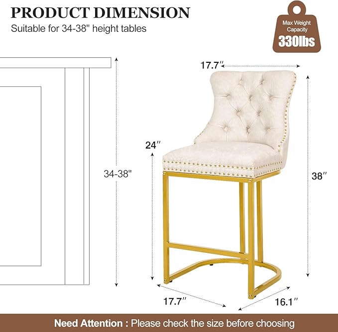 - Heavy-Duty Metal Bar Stools: 300LB capacity & stability built with a sturdy metal bar stools frame and rust-resistant legs, these barstools support up to 300 lbs. Adjustable non-slip foot pads ensure stability on uneven floors, making them ideal as counter height chairs or bar stools counter height options.