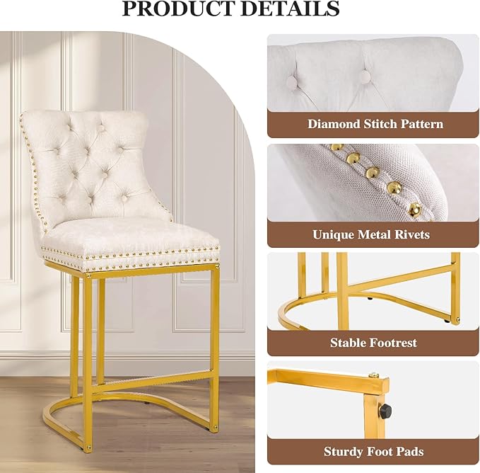 - Ergonomic Bar Stools with Backrest: Designed for ultimate comfort, these white bar height stools combine posture-supporting ergonomics with luxury details. The high-resilience foam seat and built-in footrest minimize fatigue during extended use, while the curved backrest aligns perfectly with your spine.