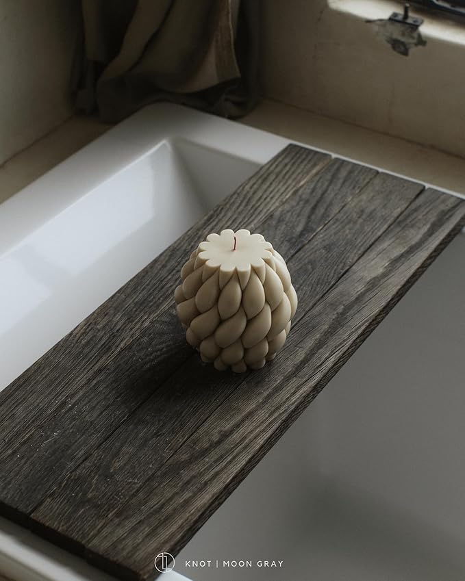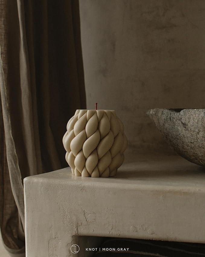 LAWA Knot Ball Candle - Large Beautiful Handmade Pillar Scented Soy Wax Elegant Bubble Aesthetic Candle Housewarming Gift Home Room Shelf Decor Idea Moon Gray