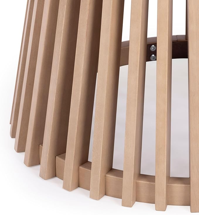 - Statement Style: Round pedestal dining table features a slatted base design that’s light and airy but still sure to catch everyone’s eye. Pair with our Lido Dining Chairs for a stylish combo that’s sure to wow.