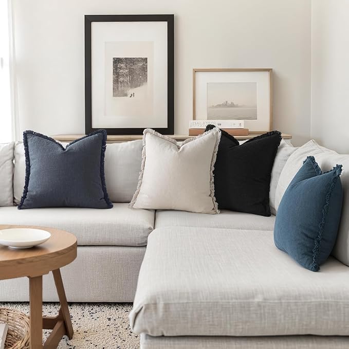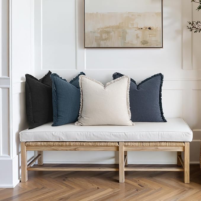 - 【Soft Linen Material】MIULEE's decorative linen pillow covers feature an 80% natural ramie linen and 20% cotton blend. The stone-washed linen adds rustic charm, with short fringes for a relaxed look. Durable and breathable, it’s perfect for year-round use.