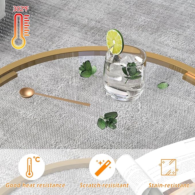 - Round Coffee Table: Small coffee table is made of 6mm Explosion-proof glass and sturdy metal frame, minimalist modern center living room table with rational structure, the metal frame design on both sides increases the sturdiness; pad feet protect your floor from scratches.