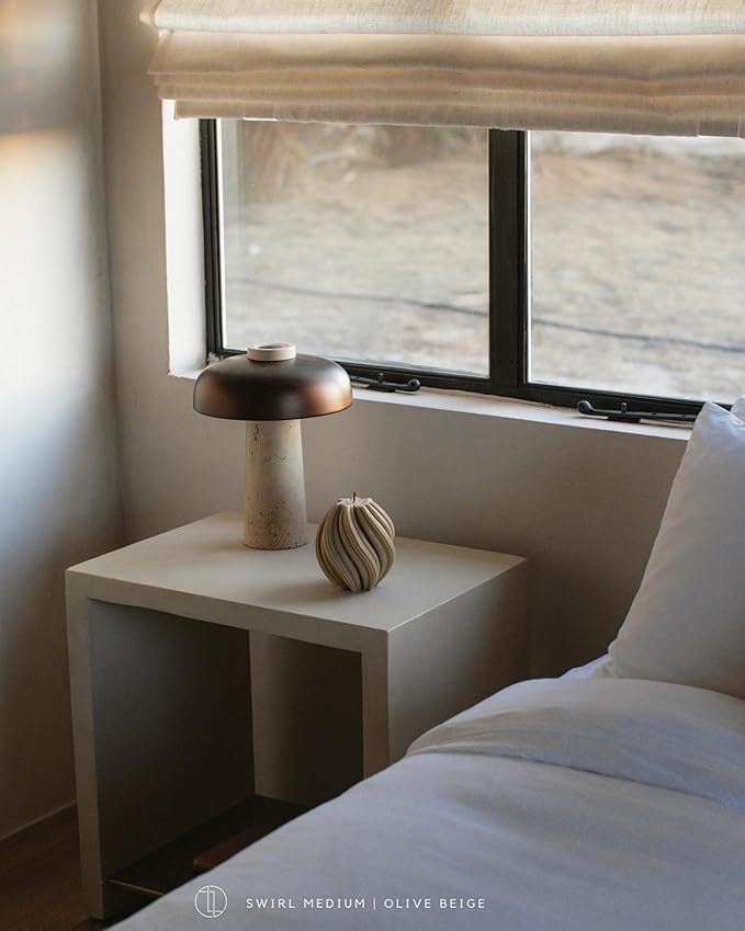 LAWA Swirl Candle - Large Beautiful Handmade Pillar Scented Soy Wax Twirl Elegant Bubble Aesthetic Candle Housewarming Gift Home Room Shelf Decor Idea Spiral Olive Beige (Medium)