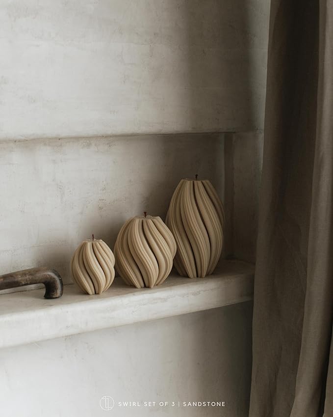 LAWA Swirl Candle - Large Beautiful Handmade Pillar Scented Soy Wax Twirl Elegant Bubble Aesthetic Candle Housewarming Gift Home Room Shelf Decor Idea Spiral Sandstone (Medium)