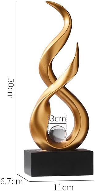- Striking Abstract Golden Design "Elevate your space with this bold golden abstract sculpture, featuring fluid lines and a central crystal ball that adds modern luxury to any setting."