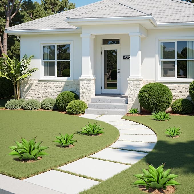 - About The Large Fake Plants Color: natural green, replica of the real agave color, delicate and durable, outdoor sun protection.Low Maintenance Unlike real plants, these artificial agave planters require no watering, pruning, or fertilizing. faux succulent outdoor plant enjoy the beauty of greenery without the hassle of maintenance.