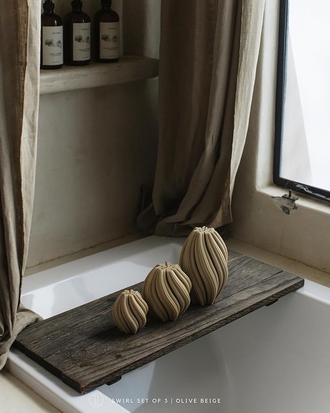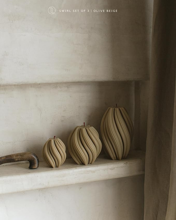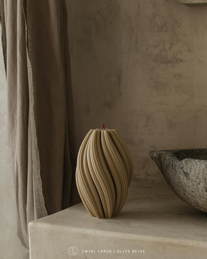 LAWA Swirl Candle - Large Beautiful Handmade Pillar Scented Soy Wax Twirl Elegant Bubble Aesthetic Candle Housewarming Gift Home Room Shelf Decor Idea Spiral Olive Beige (Large)
