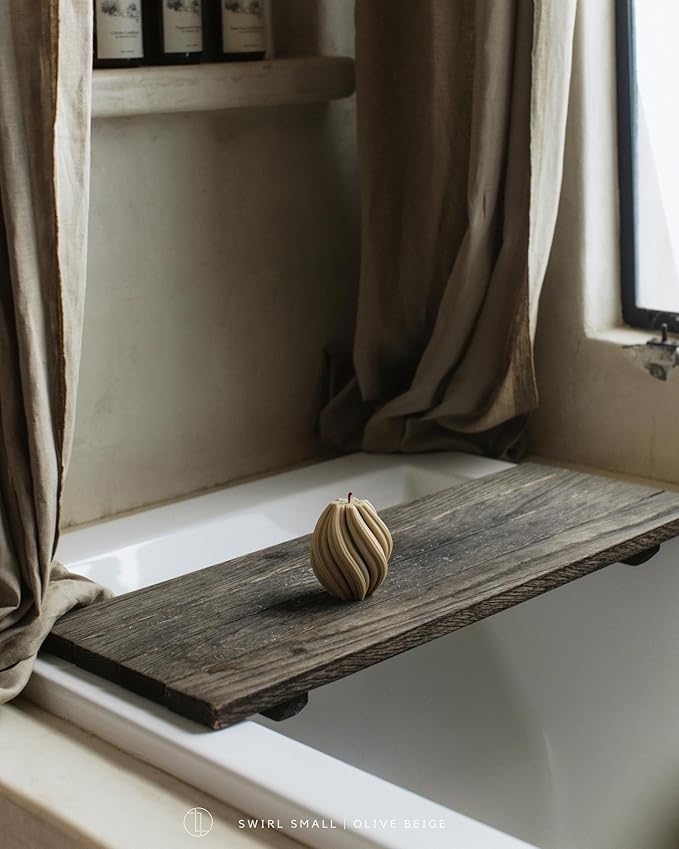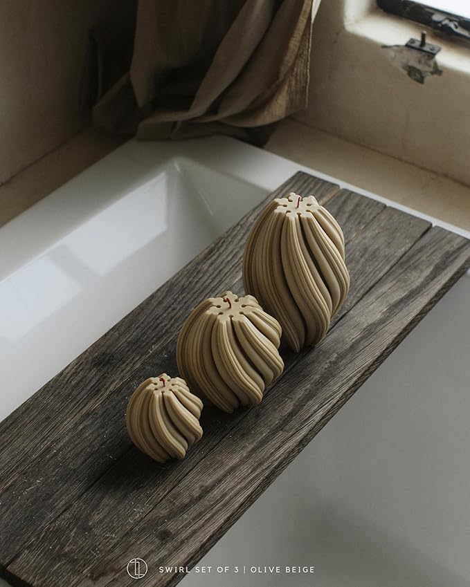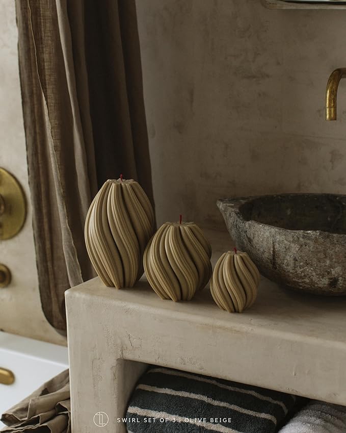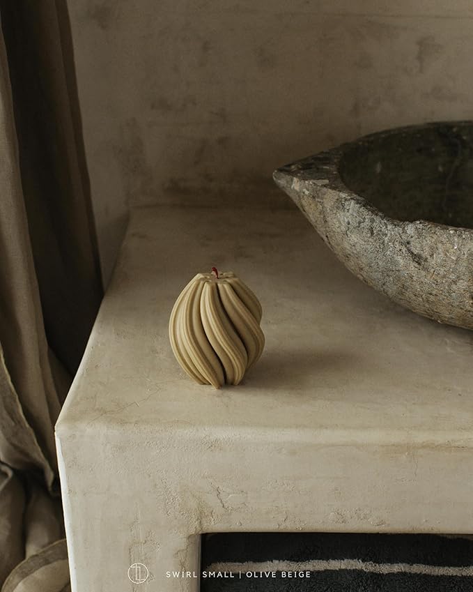 LAWA Swirl Candle - Beautiful Handmade Pillar Scented Soy Wax Twirl Elegant Bubble Aesthetic Candle Housewarming Gift Home Room Shelf Decor Idea Spiral Olive Beige (Small)