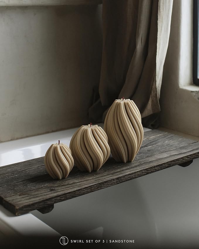 LAWA Swirl Candle - Large Beautiful Handmade Pillar Scented Soy Wax Twirl Elegant Bubble Aesthetic Candle Housewarming Gift Home Room Shelf Decor Idea Spiral Sandstone (Large)