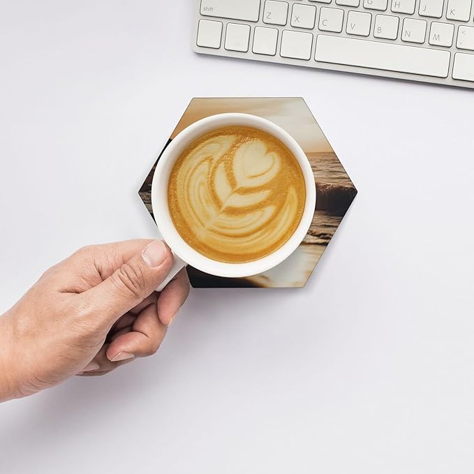 Sublimation Blanks Drink Coasters - Glazed Round Ceramic Absorbent Coasters with Cork Backing Pads,Thermal Transfer Printing Image, DIY Crafts, Painting, Gifts Wedding, and Home Decor (Hexagon 8)