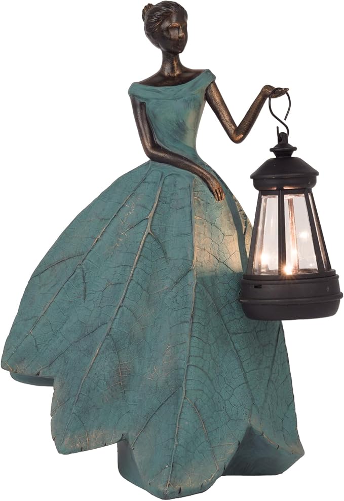 - Solar Garden Statues: Our leaf Angel girl statue product is originally designed by the designer. The skirt is in the shape of a leaf with the delicate texture of a leaf, which looks very artistic. Powered by electricity, converted from solar power during the day - stored in a rechargeable 1.2 V AAA 300 mAH Ni-MH Battery - Runs up to eight-ten hours with a full charge of sun light.