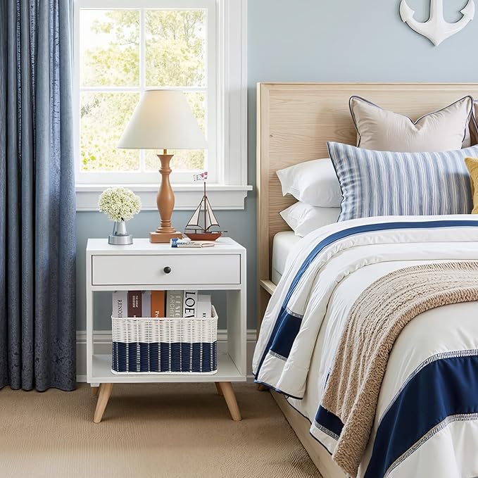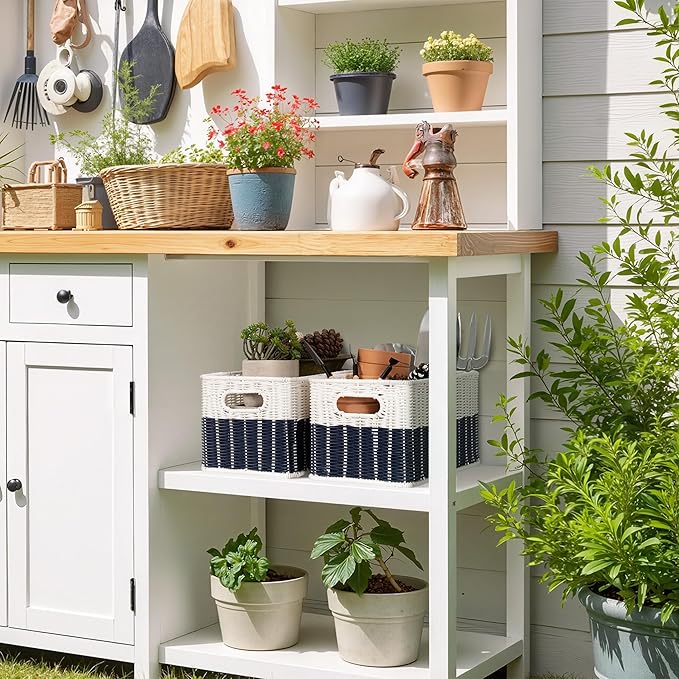 GRANNY SAYS Wicker Baskets for Shelves, Decorative Navy Baskets for Coastal Room Decor, Waterproof Basket Organizer, Wicker Storage Basket for Organizing, Beach Decor for Bedroom