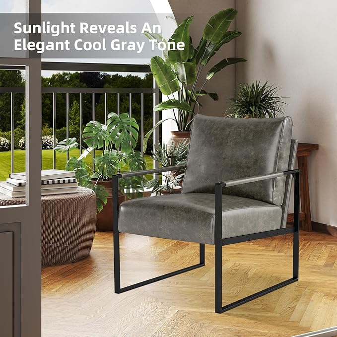 - Faux Leather-padded Armrest & Loose Back Pillow: Our faux leather accent chair is carefully crafted in many details. The metal armrest is finished with padded leather for resting your arms comfortably and adding more aesthetic details. The combination of matte black finished legs and retro brown faux leather upholstery adds an industrial edge to your living space. A loose back pillow allows better airflow, you won’t feel sweated after a long time sitting.