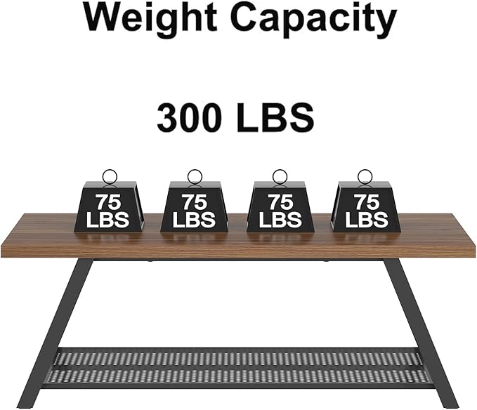 - Strong Metal Frame with Storage Space: This coffee table has a sturdy MDF top, angled metal legs, and a wire shelf that supports up to 300 lbs—ideal for displaying books, magazines, snacks, or storage baskets in modern or retro homes