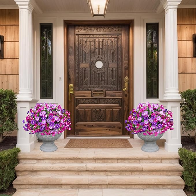 - 【Package】You’ll receive 4 grand bundles of artificial outdoors flowers, each with 16 flexible branches that bend effortlessly for custom designs. With 3 vibrant color mixed, these fake petunia flowers create instant depth—perfect for lavish outdoor decorations or striking indoor displays.