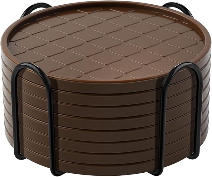 - 【Perfect Size】These coasters measure 0.24 inches (6 millimeters) in thickness and 4 inches (101 millimeters) in diameter. Boasting a minimalist and modern design, we've really honed in on the functional features that matter when you're using them.The raised rim is cleverly designed to catch more of that pesky spilled water and the condensation from your icy cold drinks. These coasters are the perfect fit for all standard cups and mugs. Whether it's your morning coffee cup, a frosty beer mug, an elegant wine glass, a sturdy whiskey tumbler, a soda can, or any other type of cup you can think of, this coaster set has got you covered and will handle them all like a pro.