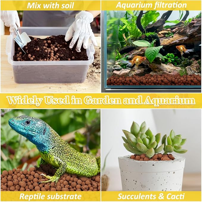 - Wide Application: Our lightweight leca balls are the perfect growing substrate for orchids, succulents and cacti. Organic clay pebbles provides efficient biological filtration, which is good for cultivating beneficial flora and stabilizing water quality, making it very suitable for aquarium filtration. As the reptile substrate, lecca balls are hygroscopic, easy to clean, and can reduce odors.