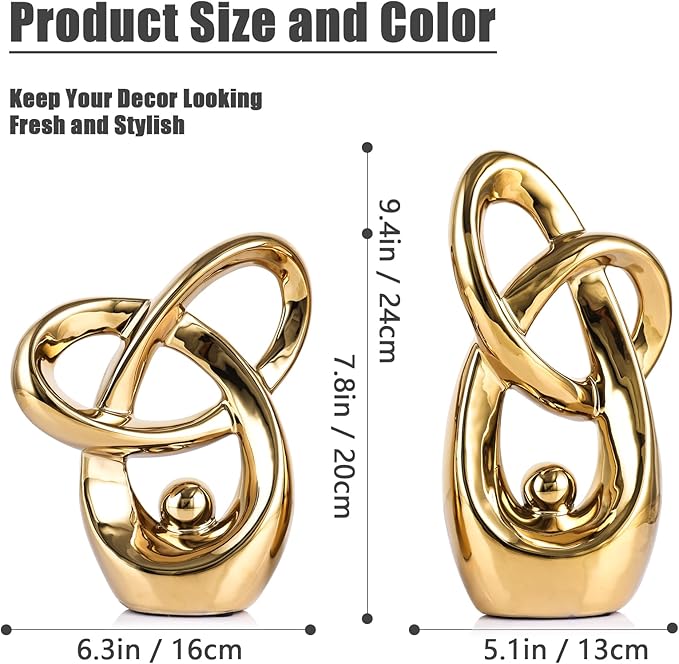 Gold Modern Abstract Art Home Decor Accent,Statues Coffee Table Decor for Living Room,Table Centerpieces for Dining Room,Ceramic Sculptures and Gold Knick Knacks for TV Stand Decor