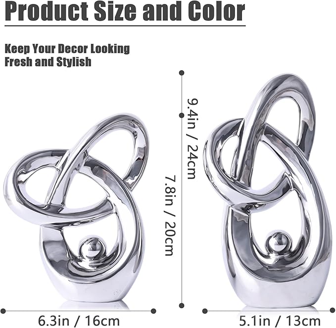 Silver Modern Abstract Art Home Decor Accent,Statues Coffee Table Decor for Living Room,Table Centerpieces for Dining Room,Ceramic Sculptures and Silver Knick Knacks for TV Stand Decor