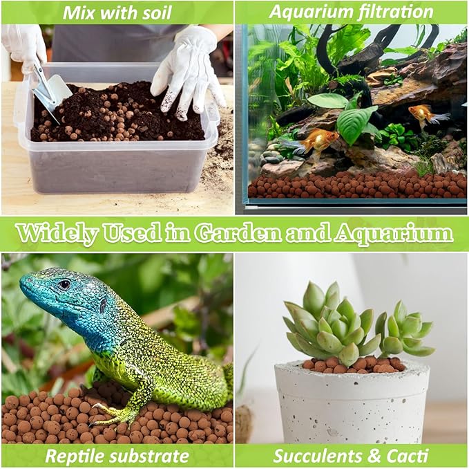 - Wide Application: Our lightweight leca balls are the perfect growing substrate for orchids, succulents and cacti. Organic clay pebbles provides efficient biological filtration, which is good for cultivating beneficial flora and stabilizing water quality, making it very suitable for aquarium filtration. As the reptile substrate, lecca balls are hygroscopic, easy to clean, and can reduce odors.