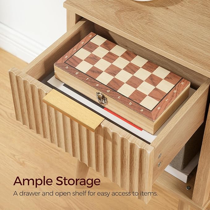 End Table, Fluted Night Stand, Modern Side Table, Bedside Table with 1 Drawer and 1 Open Compartment, Mid Century Nightstand, for Living Room, Bedroom, Study, Office, Natural ETNA6201