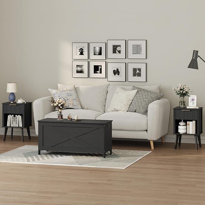 - Multiple Storage Options: At 15.4"L x 11.4"W x 24"H, the bedside table features a top for photo frames, potted plants, and ornaments, a middle drawer for personal items, and a lower open compartment that keeps books and remotes within easily accessible