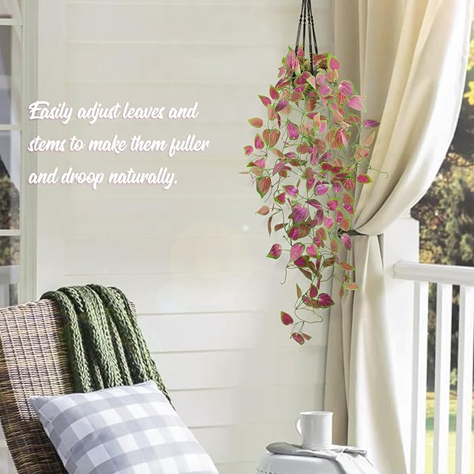 - Durable & Weather-Resistant Material: The leaves of this hanging potted plant are made of premium non-toxic plastic, featuring clear and realistic veins with a natural touch. The stems, embedded with metal wires inside, are sturdy and durable, allowing you to adjust the shape as you like.