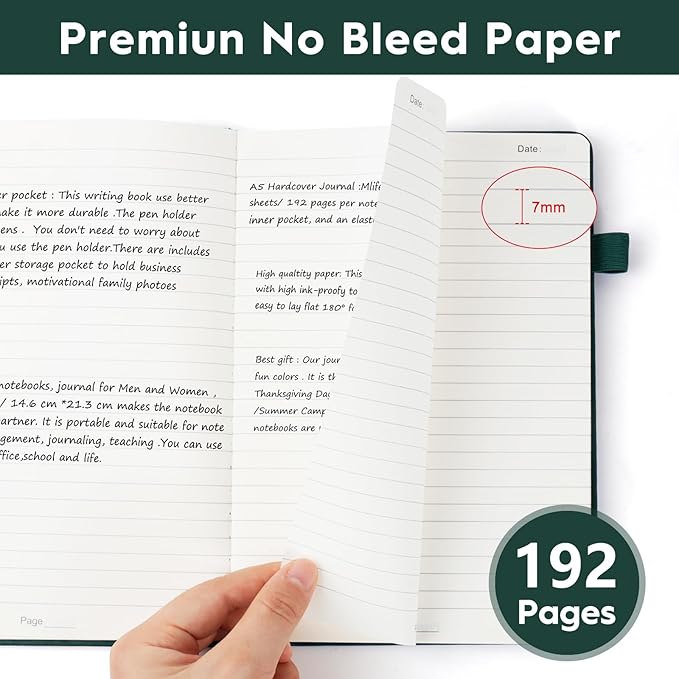• 【Hardcover Leather Journal Notebook】The A5 Leather notebook is made from high quality vegan leather, no animals were harmed, a comfortable touch. The durable, water-resistant hardcover protects your notes and provides a stable writing surface. The thread-bound binding allows the journal to lay flat for easy writing.