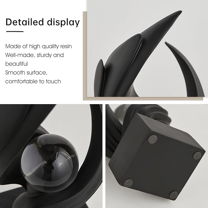 - Abstract Art Sculpture – Crafted with premium resin, this 11.02" tall (28cm) decorative statue showcases a 2.36" diameter (6cm) crystal ball centerpiece. The base measures 6.38" (16.2cm) in length and 4.65" (11.8cm) in width, balancing modern design with artistic elegance.
