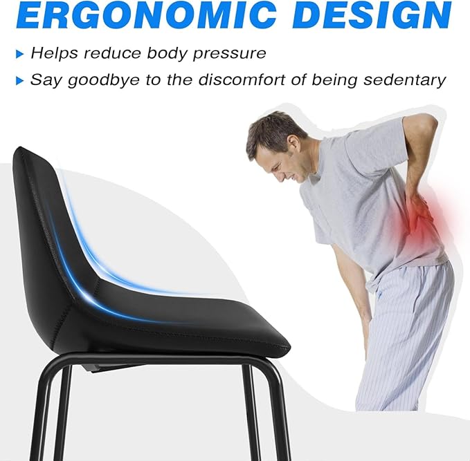 - Ergonomic Design: The Rfiver barstools' curved L-shaped backrest is ergonomically designed to fit people of all heights. We have designed the seat to be deeper and broader with soft foam padding to maximize body pressure distribution when sitting on it. You can place your legs on the footstool and adjust the comfortable sitting position so that your body can be completely relaxed and you will not feel tired even after sitting for a long time