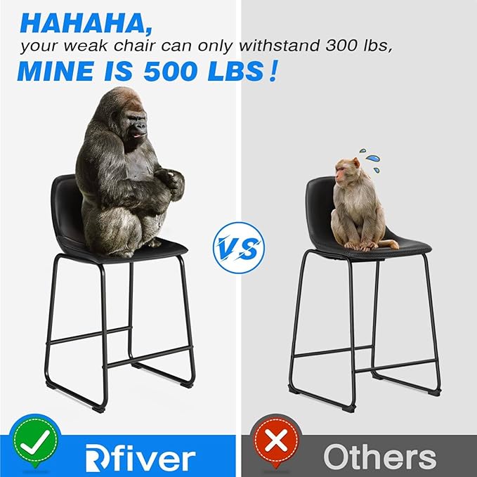 - Max Weight Capacity 500 Pounds and Protectors: The sturdy frame of bar chairs is made of solid premium steel, So the max weight capacity of the bar height stools is 500 lbs. You don't need to worry about rusting or bending. The counter height barstools are designed with non-slip and anti-scratch protectors, which will not overturn on the side and protect the floor from scratching