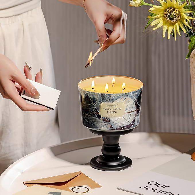 HomeLights Soy Wax Candles for Home Scented, 4-Wick Candles in Sandalwood Jasmine Scented, Industrial Chic Aromatherapy Candles Gift for Parties, Relaxing, 18oz