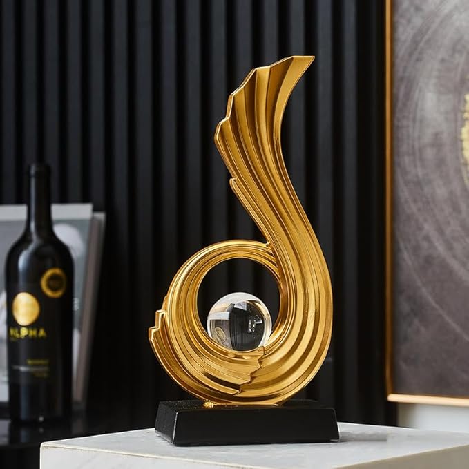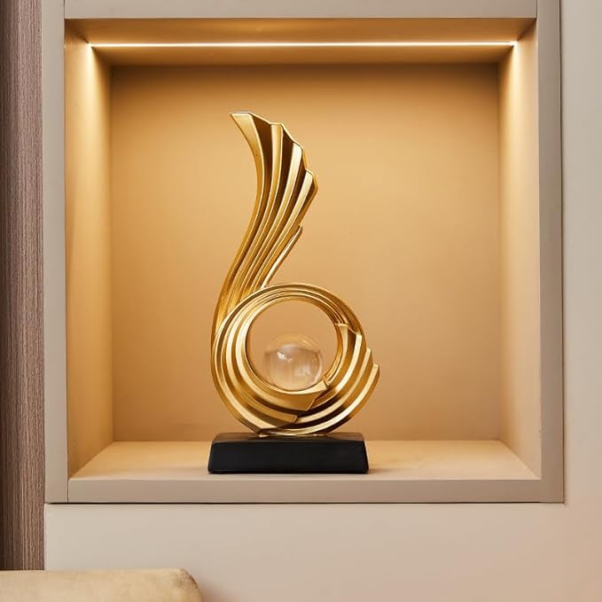 Modern Golden Abstract Art Sculpture, Gold Entryway Table Accents, Resin Statue–Crafted Decor for Living Room, Office & Coffee Table Accents