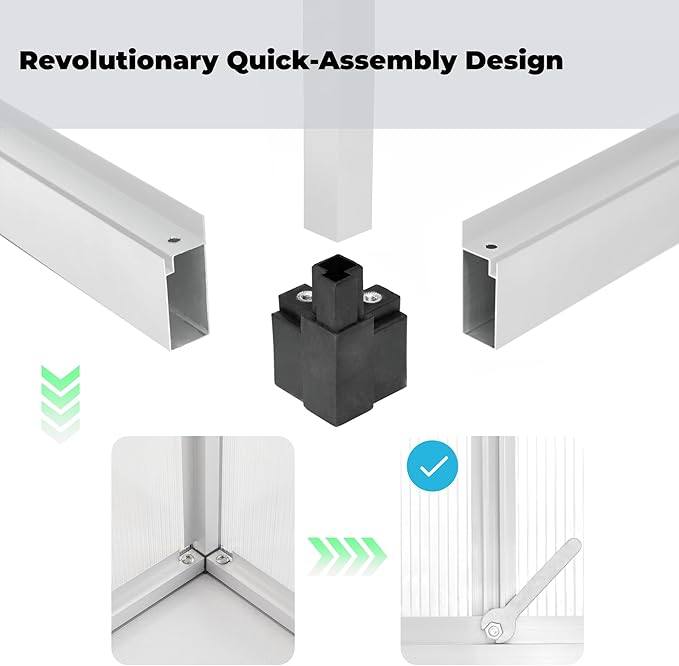 - EASY INSTALLATION: Each of the two packages contains an aluminum alloy frame and PC panels, complete with detailed installation instructions. The greenhouse's frame allows for easy assembly, enabling two DIY enthusiasts to complete the setup in just 3 hours