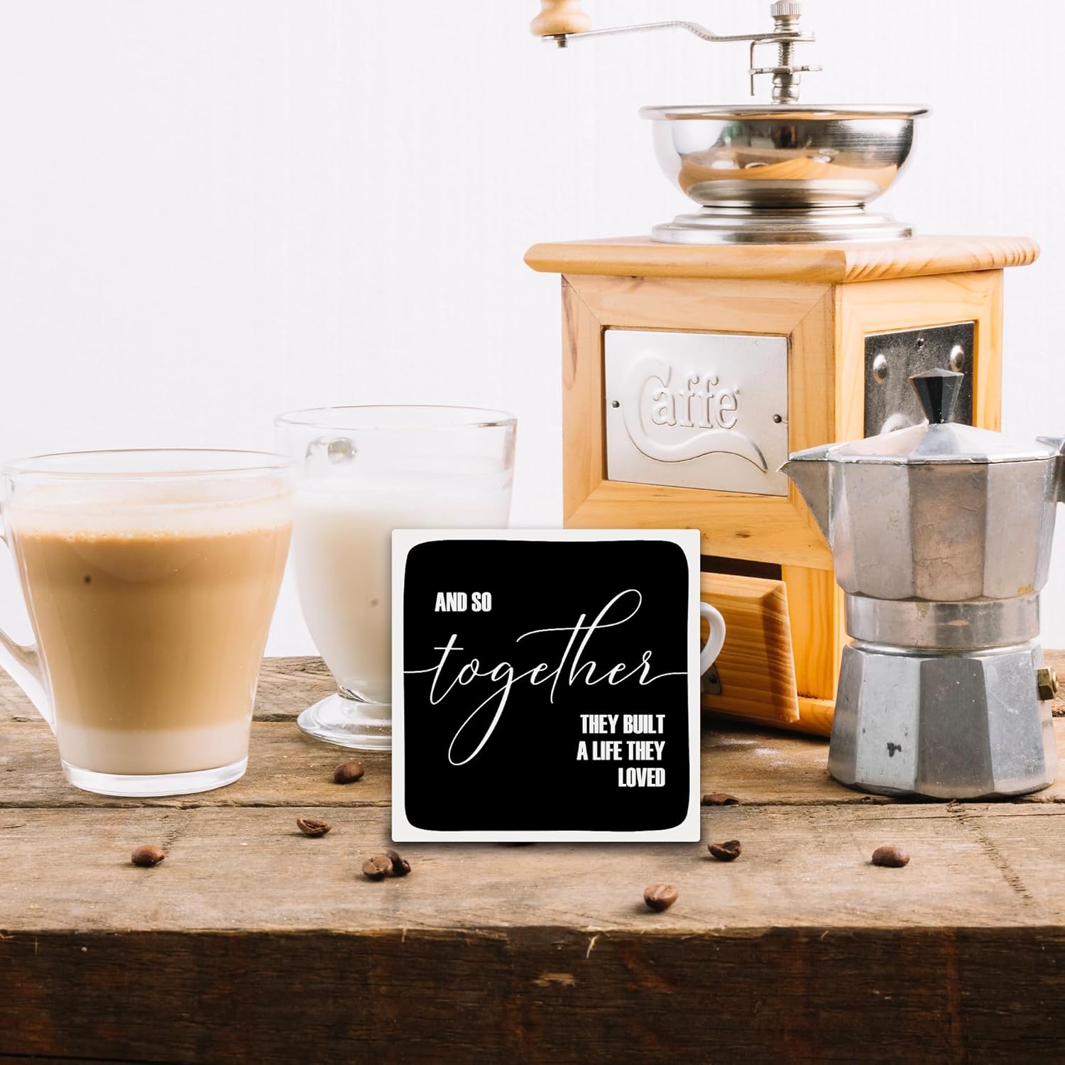 And So Together They Built A Life They Loved Wooden Block Plaque - Black Tabletop Sign Decor For Friend Family-5"x5" Bedroom Living Room Wood Block-Funny Desk Gifts Favors & Supplies - A22