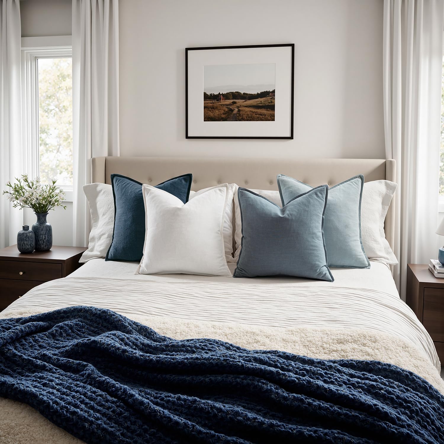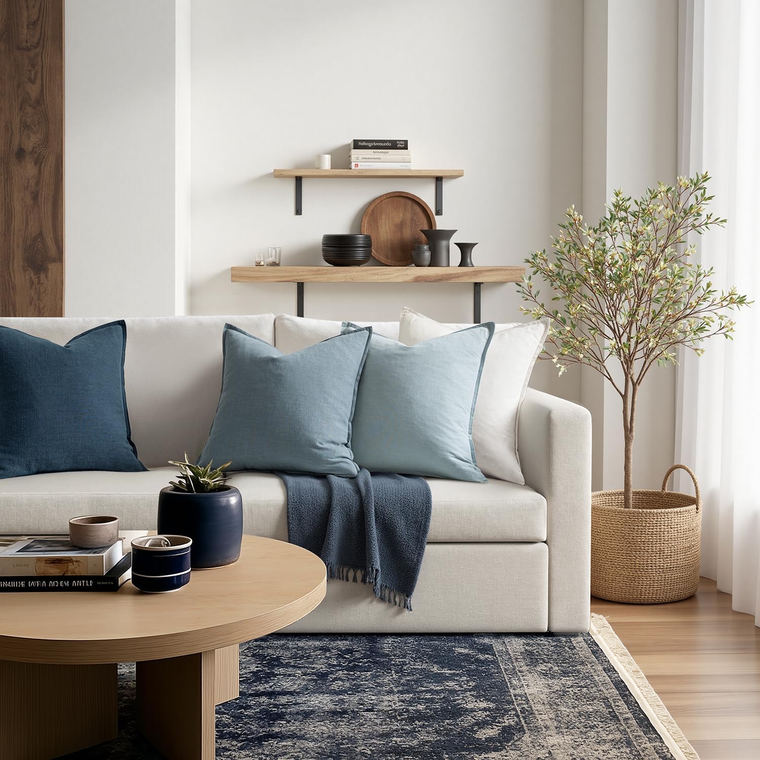 MIULEE Blue Pillow Covers Pack of 4 Christmas Decorative Natural Solid Throw Pillow Covers Soft Accent Boho Farmhouse Couch Pillowcases Modern Home Decors for Living Room Bed Sofa 18x18 Inch